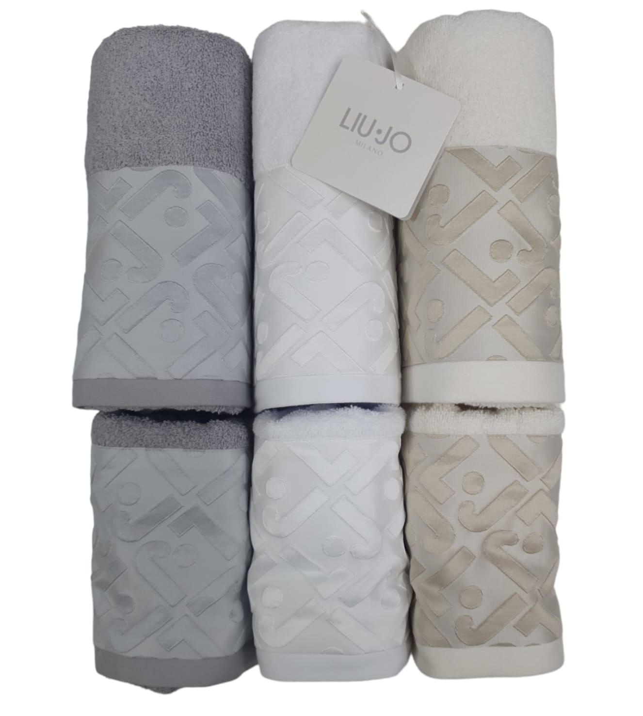 Set 3+3 asciugamani spugna di cotone mod. logo LIUJO